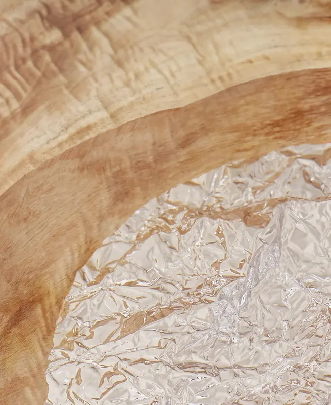 Luxury river-style dining table with silver-transparent epoxy and sculpted chrome legs for a sculptural modern look.