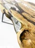 A handcrafted luxury console table featuring Poplar wood combined with crystal-clear ice-texture epoxy, elevated by an elegant sculptural gold metal base for a refined modern statement piece.
