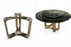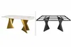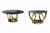 • Base: Gold-finished sculptural metal base